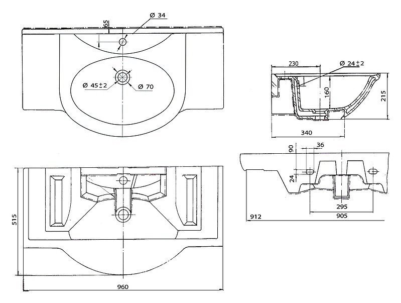 - Раковина Dreja Дрея 95 (ш/в/г): 960x515 мм